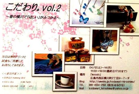 | 12 (土) | 『こだわり vol.2』〜春の横川で「ほしい」が見つかる。 |